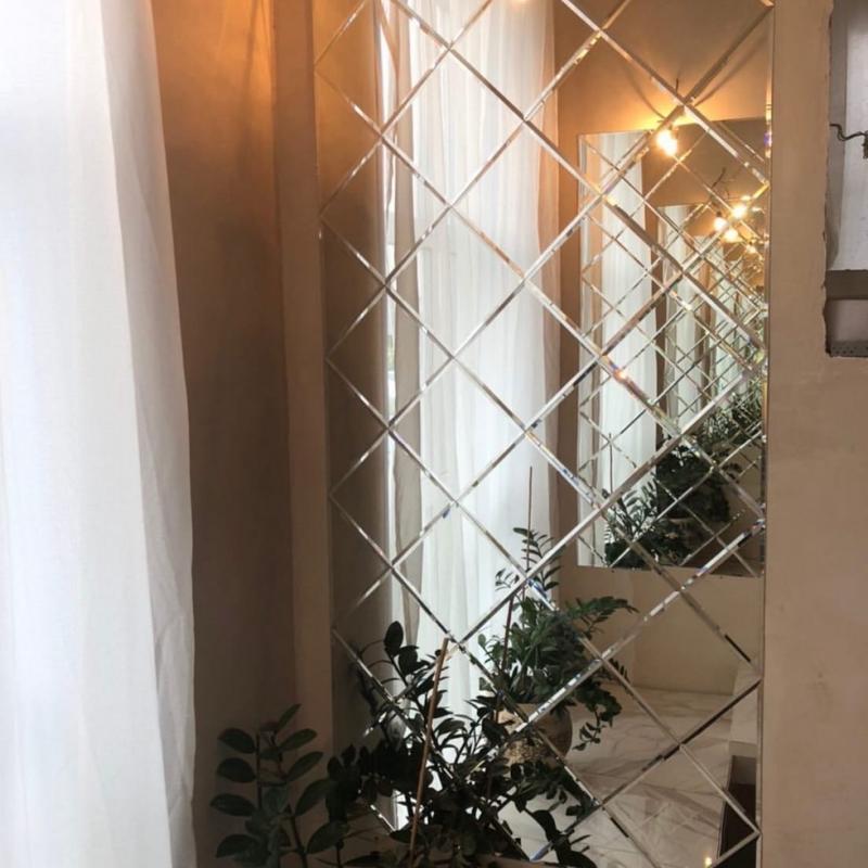 Использована серебряная квадратная зеркальная плитка.